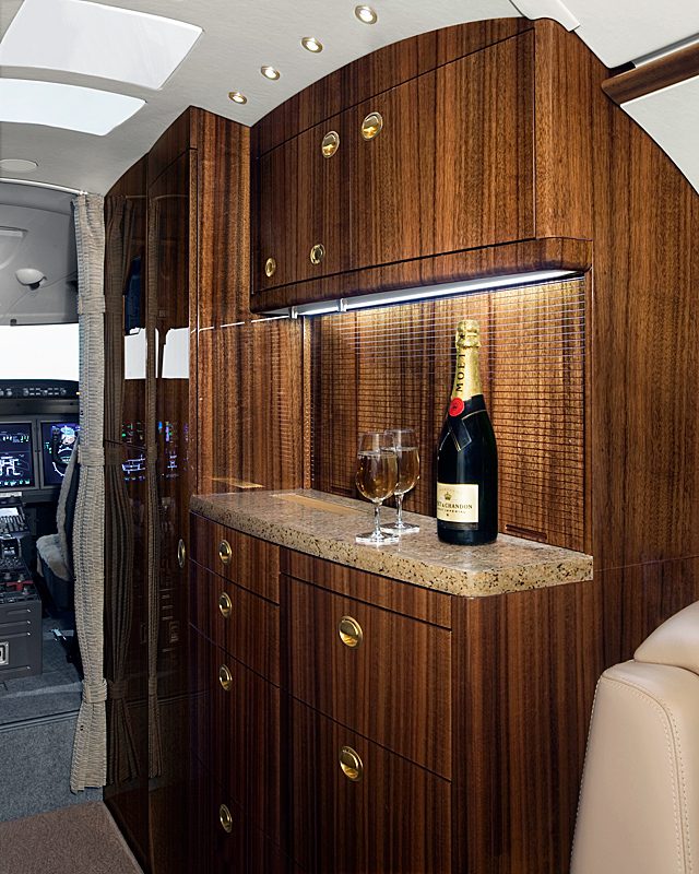 The interior of this Challenger 300 is in new condition. It is a nine passenger interior in double club configuration with an aft belted potty. The club chairs are fully articulating/berthable chairs in 100% Sierra Cowhide leather with Dado storage boxes. Seats 3 & 4 have leg rests. The cabin sidewall is 100% Pearly Gates silk & the cabin headliner is Milkweed Ultraleather. The full forward galley & vanity countertops are polished stone veneer. Cabinetry is high-gloss Sand Beige complete with Satin Gold 24K plating. Private full aft lavatory & vanity with entrance to external baggage. Deluxe baggage has the flap & there is a hang-up bar in closets & baggage; aft ladder. Other amenities include Airshow 4000 System with Domestic Package, touch pad controls, dual DVD player with cabin jacks, microwave & more! Remainder of Full Factory Warranties!!