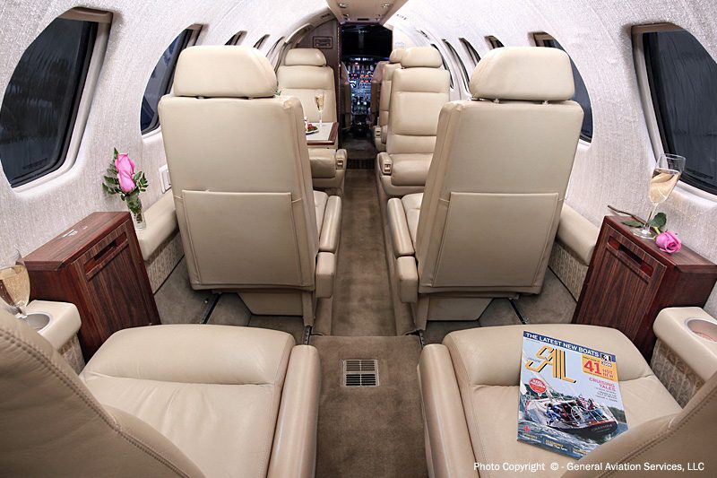 Citation V – After stretching the Citation I to make the II, Cessna decided to increase the size of the cabin again, stretching the fuselage by another 20 inches (510 mm), resulting in the largest member of the straight-wing family, the Model 560 Citation V. The first engineering prototype flew in August 1987, and certification was granted in December, 1988. The aircraft utilized the T-47A’s JT15D5A engines for extra performance. By the time the aircraft was superseded in 1994, 262 had been built. Citation Ultra In 1993, Cessna decided to update the Citation V design, and announced the Citation Ultra, with the main differences being in the engines, which were the latest JT15D-5D version, and the standard avionics suite, which was updated to the Honeywell Primus 1000 EFIS glass cockpit. The Primus 1000 replaced the standard “round dial” flight instruments with three CRT computer screens, one for each pilot and one center multifunction display. In 1994, the Ultra was named Flying magazine’s “Best Business Jet”. The Ultra was produced from 1994-1999.