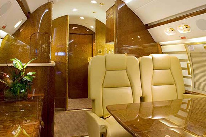 In 1997, Gulfstream introduced a new era in the history of business aviation with the Gulfstream V, the world’s first ultra-long range business jet. The GV is the first civil aviation aircraft to be equipped with the FAA certified Gulfstream Enhanced Vision System (EVS). The GV is powered by two Rolls-Royce BR710 turbofan engines and is able to travel non-stop for 6,500 nautical miles with speeds up to Mach 0.885. The cabin is a GIV cabin that has been stretched five feet to make room for a crew rest area.