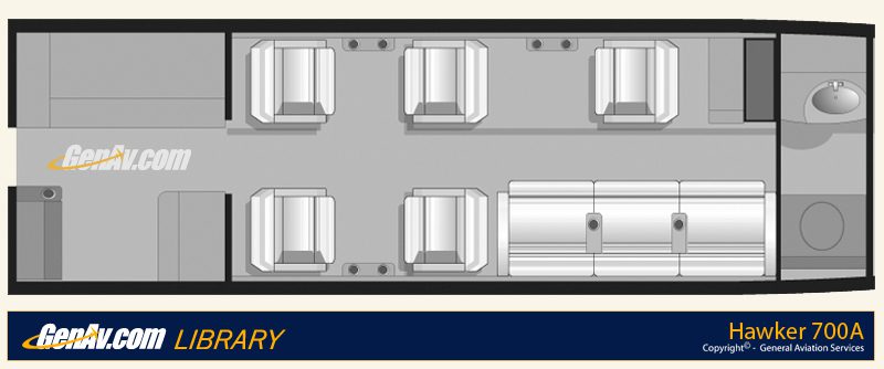 The Hawker 700 is uniquely noted as a quiet mid size jet with advanced avionics and high performance quality. The Hawker 700 is perfect for small to long range flights. Without the noise volume that some business jets produce, the Hawker 700 is capable of entry into any airport nationally or worldwide. The Hawker 700 is also noted for its wider cabin; up to 6W x 5.7H x 21.3L (in feet). The Hawker 700 easily seats eight passengers, travels at 450 mph, and has a range of 1,950 miles.