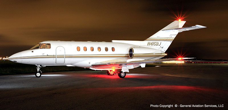 The HS-125-700 and Hawker 800 are two more recent versions of the world’s longest running corporate jet production program. The 125-700 and Hawker 800 are direct developments of the DH-125 (later the HS-125), which first flew in August 1962. This aircraft was developed into a number of variants through to the HS-125-600, all of which are powered by the Rolls-Royce Viper turbojet and are described separately under Hawker Siddeley. The introduction of the HS-125-700 in 1976 brought with it significant performance and fuel economy benefits as the -700 incorporated Honeywell TFE-731 turbofans. The 125-700 first flew on June 19, 1976, and the model remained in production until it was replaced by the 125-800 in 1984. The 125-800 first flew on May 26, 1983 and it introduced a number of improvements. Aerodynamic changes included a re-profiled nose and windscreen, extended fin leading edge, and greater span wing which decreased drag and increased lift and fuel capacity. Range was boosted further by a larger ventral fuel tank. More powerful TFE-731s improved field performance, while a redesigned interior made more efficient use of the space available. The 800 was also the first corporate jet to feature an EFIS cockpit and is now available with the Collins Pro Line 21 avionics suite. The 800A was specifically aimed at the US market, the 800B for non US markets. The 125-800 became the Hawker 800 in mid 1993 when Raytheon purchased BAe’s Corporate Jets division. Production has been transferred to Wichita in the USA (the first US built 800 flew on November 5, 1996, the last UK built 800 on April 29, 1997).