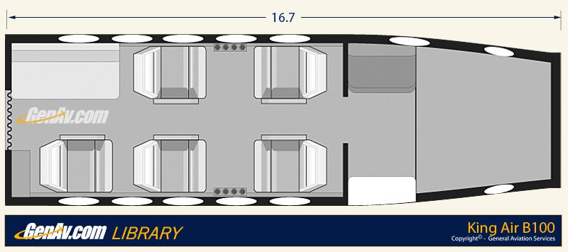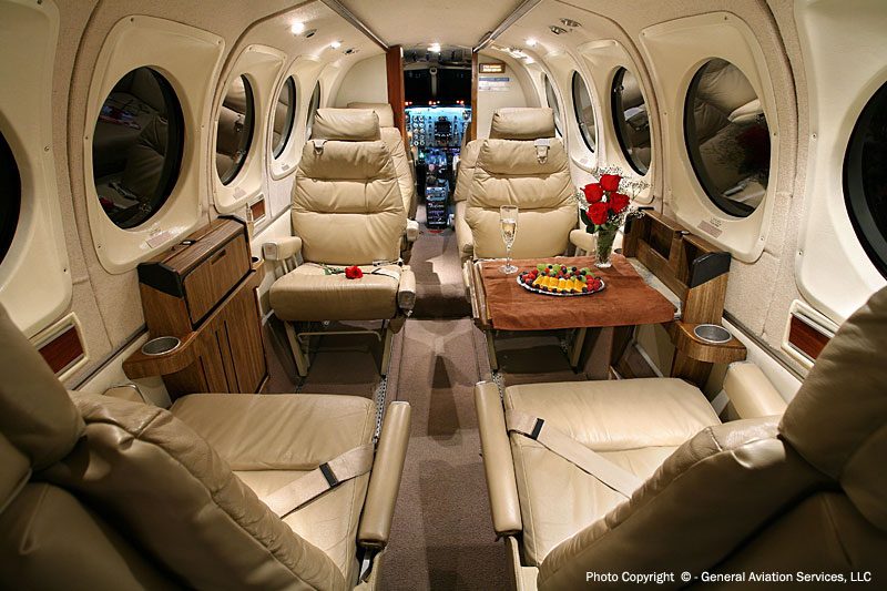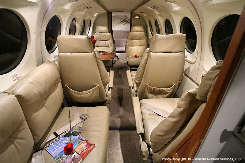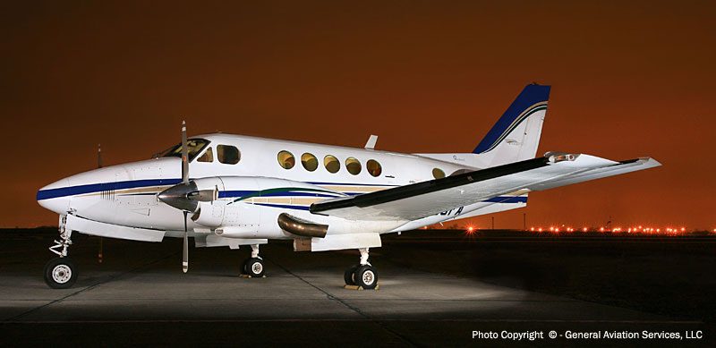 The Model 100 is a stretched derivative of the Model 90 featuring five cabin windows instead of the Model 90’s three; MTOW increased by 1,300 lb (590 kg) over the 90, to 10,600 lb (4,810 kg). The 100 used the wings, tail, and engines (two PT6A-28 engines rated at 620 shp) from the Model 99 airline, itself a development of the Queen Air (as was the Model 90). The Model 100 was flown for the first time on 17 March 1969 and unveiled to the public in May. 89 Model 100s were built before it was superseded by the Model A100 in 1972, with a further increase in MTOW to 11,500 lb (5,220 kg), fuel capacity increased by 94 US Gallons (357 litres), and four-bladed propellers. A total of 157 A100’s were built by the time production of this model ceased in 1979. The next in the series was the B100, which featured 715 shp (533 kW) Garrett AiResearch TPE-331 engines as an alternative to the Pratt & Whitneys offered on other King Airs, and another increase in MTOW to 11,800 lb (5,350 kg). The B100 was introduced in 1976 and was produced concurrently with the A100 for several years; manufacture ceased in 1983 after 137 were built. The Model 200 Super King Air was developed from the Model 100, with the same fuselage design (with some differences, mainly associated with the different tails) being used for both models. The Model 200 had different wings and a T-tail and entered service in 1974.