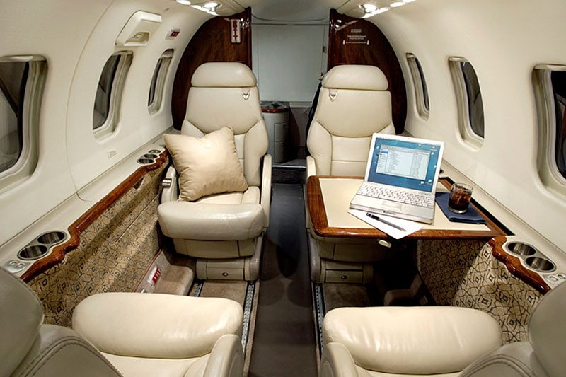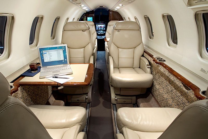 The Learjet 45 was Learjet’s first completely new model, since the Learjet 23. It is larger than the Learjet 31 and smaller than the 60. The cabin is seven feet longer than the 31 and has more head and shoulder room than any other aircraft in its class. The cabin has double club seating, a galley and a full aft lavatory. The cockpit has a Honeywell Primus 1000 integrated avionics suite and the FADEC equipped Honeywell TFE 731-20AR engines was developed in cooperation with Learjet for increased fuel economy and reduced operating and maintenance costs.