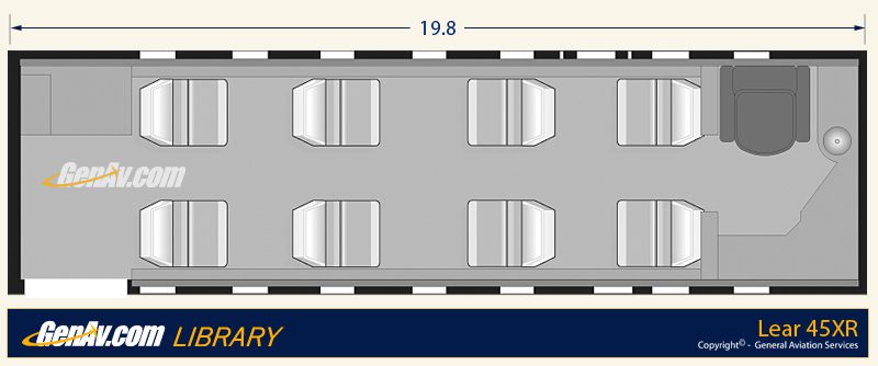 The Learjet 45XR is a Learjet 45 with a 1,000-pound heavier ramp and takeoff weights as well as two TFE 731-20BR engines. The Learjet 45 was the first completely new model, since the original Learjet 23. It is larger than the Learjet 31 and smaller than the 60. The cabin is seven feet longer than the 31 and has more head and shoulder room than any other aircraft in its class. The cabin has double club seating, a galley and a full aft lavatory. The cockpit has a Honeywell Primus 1000 integrated avionics suite and the Honeywell TFE 731-20BR engines are FADEC equipped. The Learjet 45XR was certificated in 2003 and has been in production since.