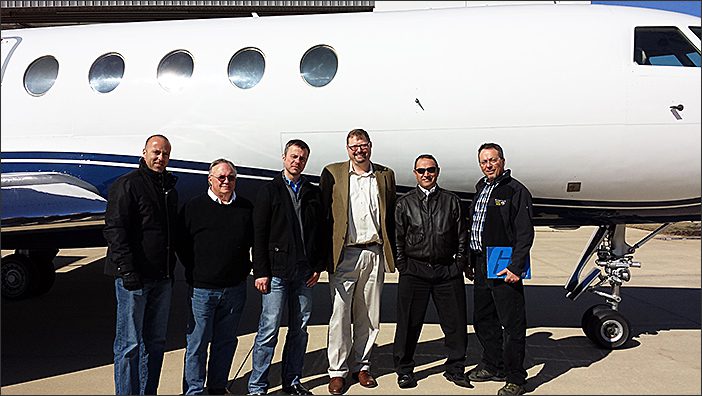 This past week, General Aviation Services was pleased to deliver Falcon 50, S/N 153 to its new customer. First delivered by Dassault in 1985, S/N 153 has proudly served only two previous owners, both Fortune 500 companies. In addition to extensive recent maintenance, S/N 153 was recently refurbished with new paint done by Standard Aero. Representatives of both the buyer and seller are shown along with David Coleman (Center-Right) from General Aviation Services. For more information about this transaction, please contact David Coleman 847-726-5000.